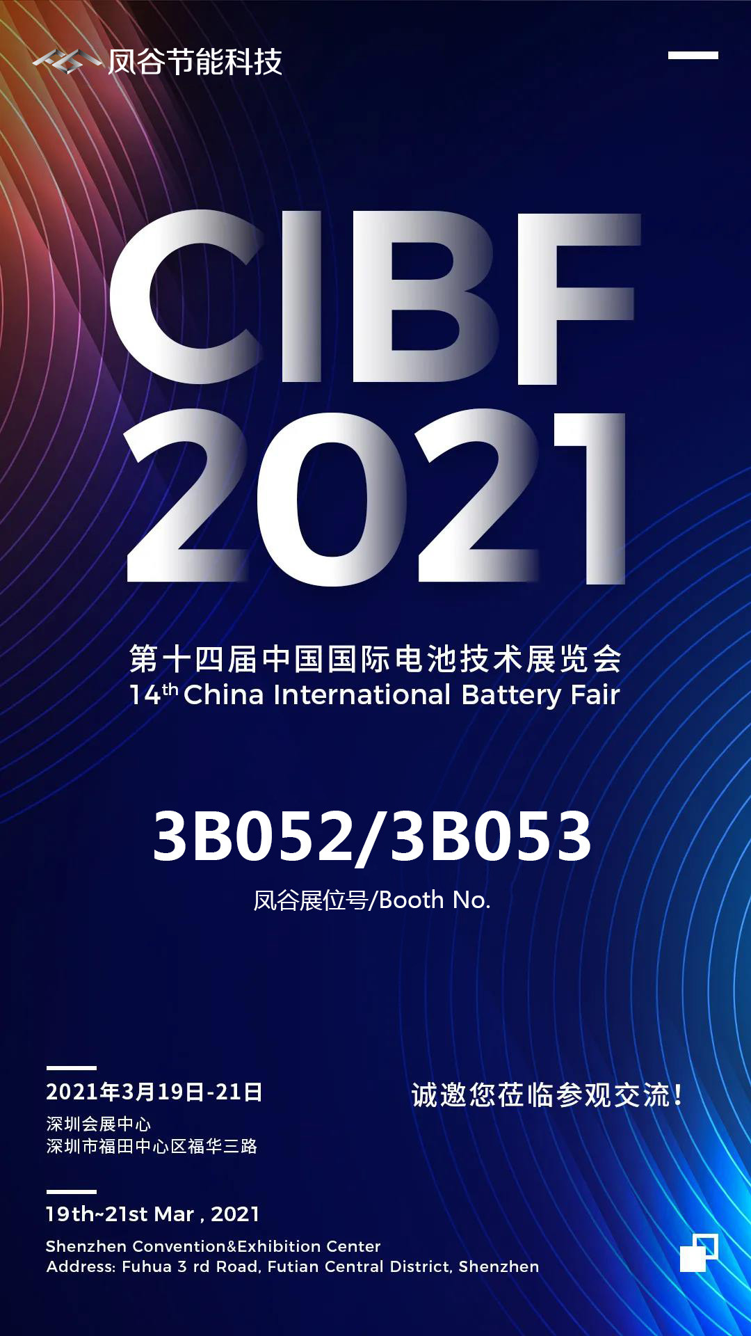 3月19日-21日,CIBF2021第十四屆中國國際電池技術(shù)交流會/展覽會將在深圳會展中心舉辦,江蘇鳳谷節(jié)能科技有限公司將參加此次盛會。中國國際電池技術(shù)展覽會是中國化學(xué)與物理電源行業(yè)協(xié)會主辦的電池行業(yè)...
