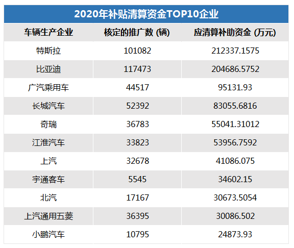 總體看來(lái),比亞迪、北汽、東風(fēng)汽車、特斯拉、奇瑞、吉利汽車、宇通客車、長(zhǎng)城汽車、上汽、廣汽乘用車、中通客車此次都能拿到超過(guò)10億元的新能源汽車補(bǔ)貼資金,其中比亞迪以被核準(zhǔn)15.5萬(wàn)輛車可以拿到39.8億元補(bǔ)貼,位列本次補(bǔ)貼清算資金量頭名。
